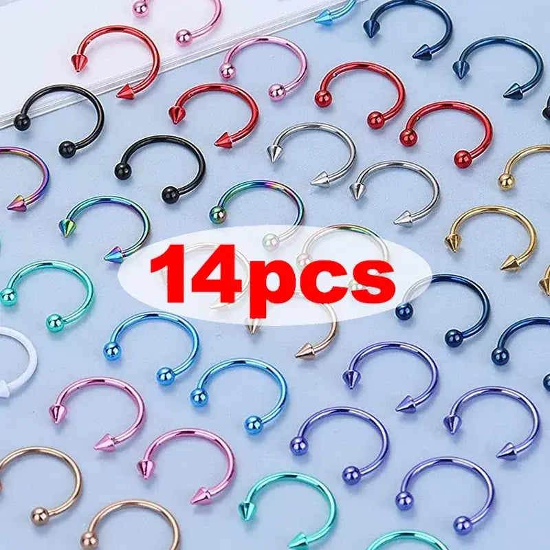 14Pcs Cone Spike Horseshoe Circular Body Jewelry