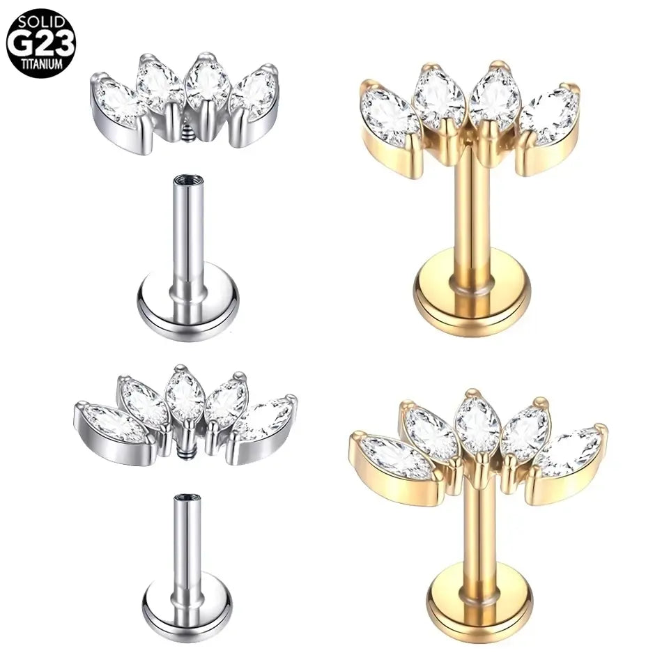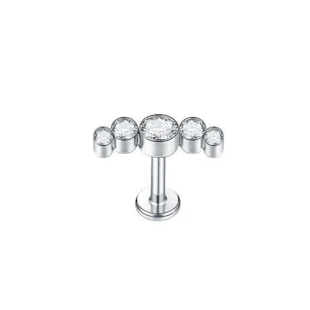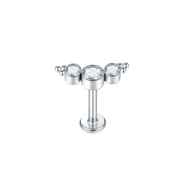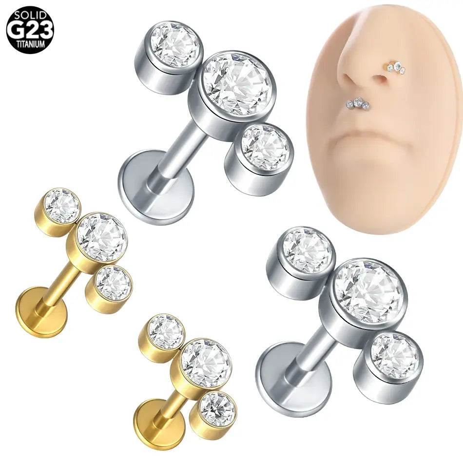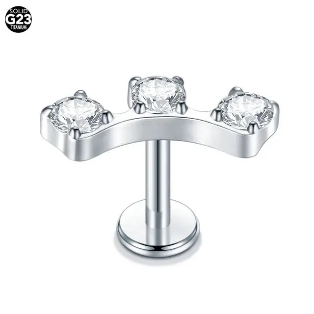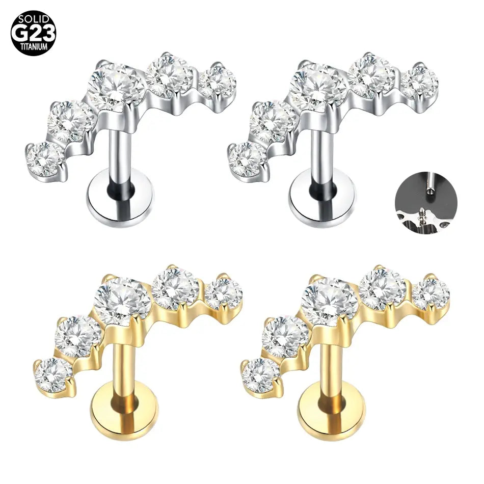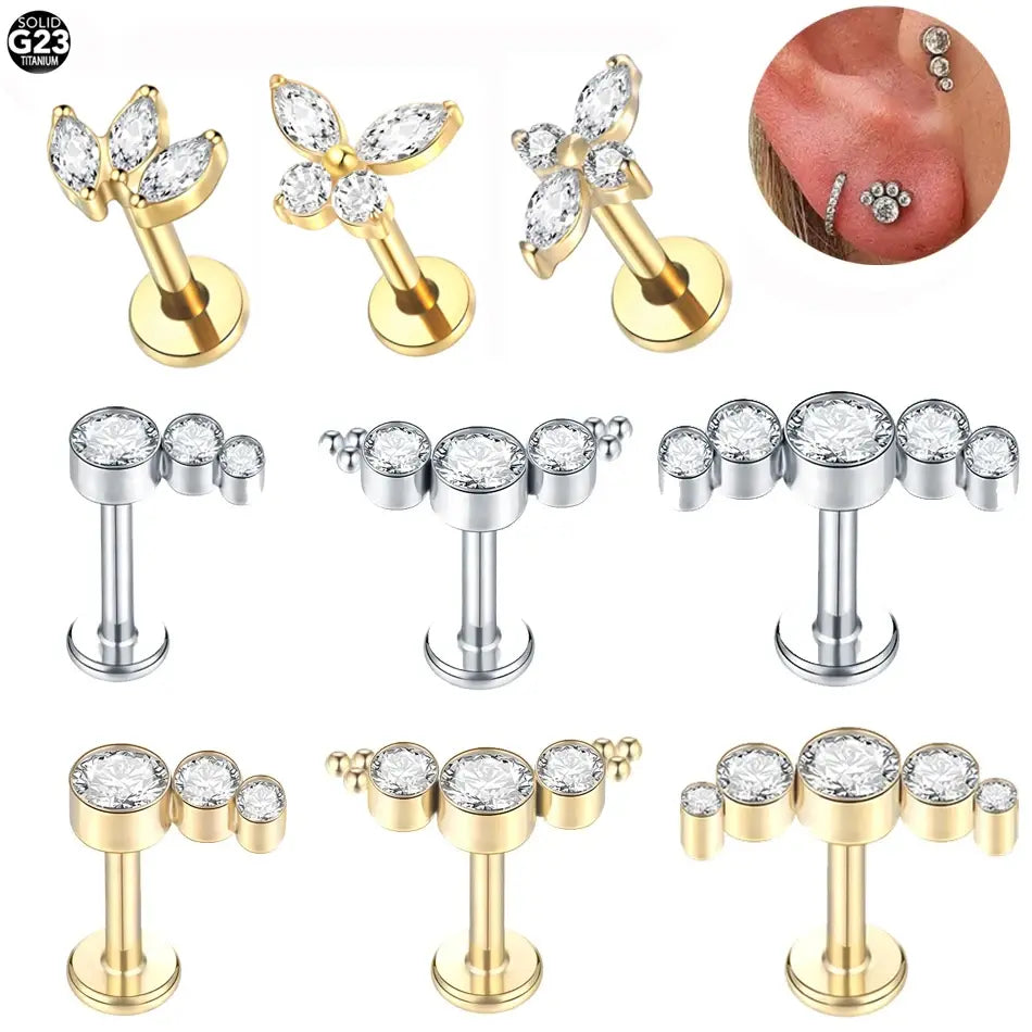 1Pc G23 Titanium Ear Tragus Earring Stud Internally Threaded CZ Crystal Labret Ring Cartilage Helix Piercing Body Jewelry 16G