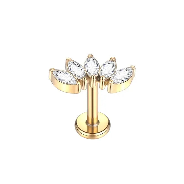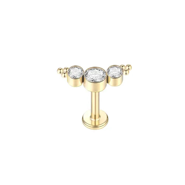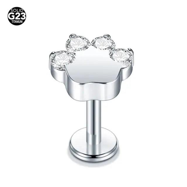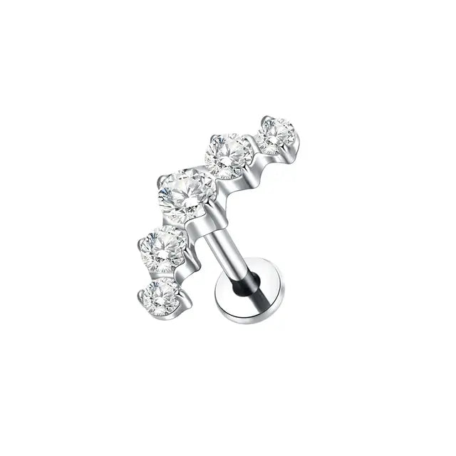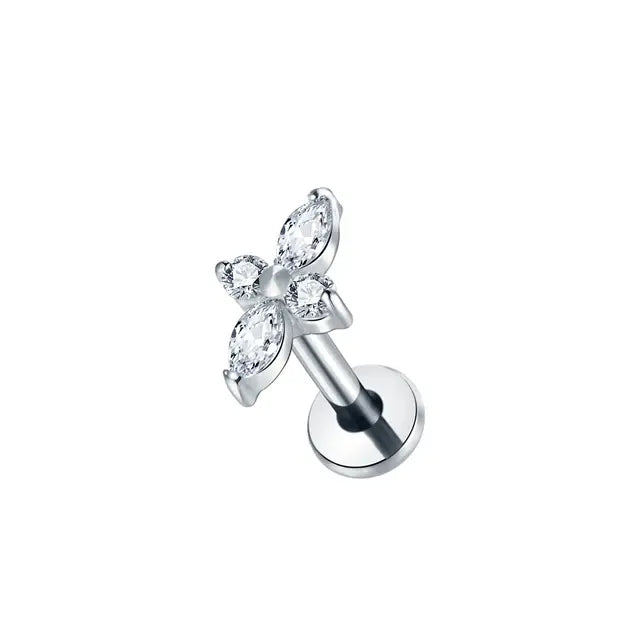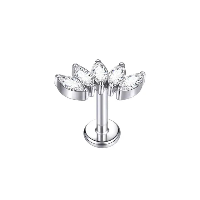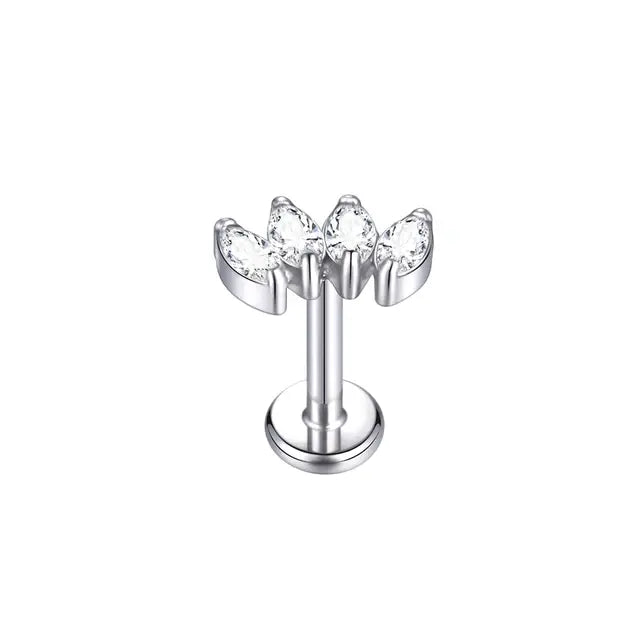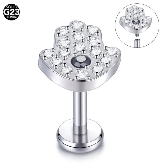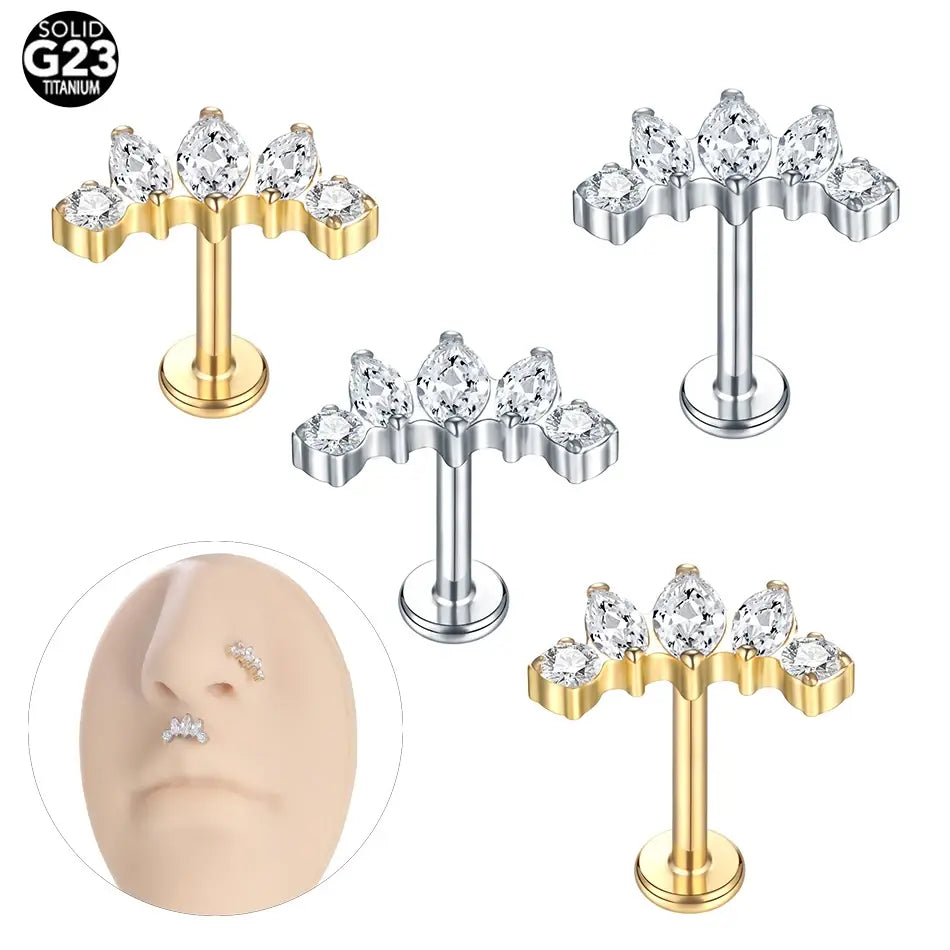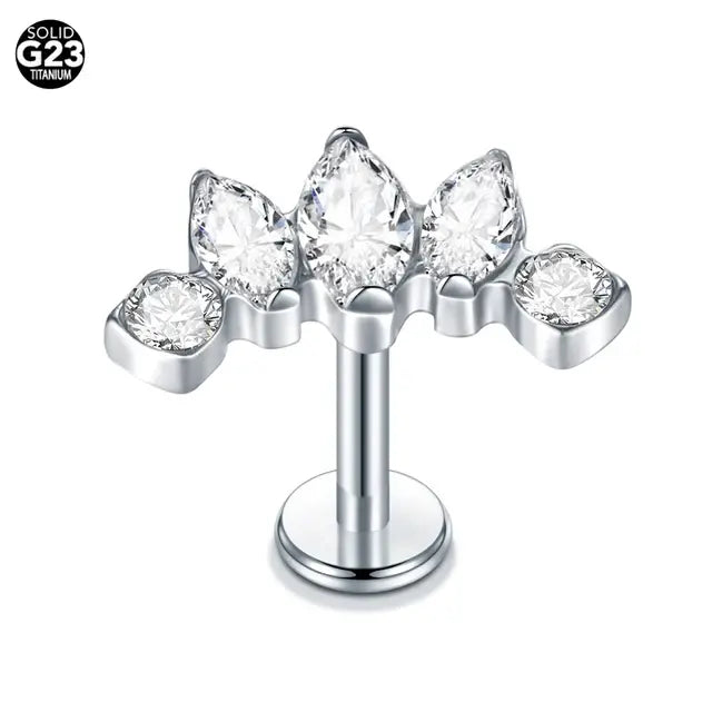 1Pc G23 Titanium Ear Tragus Earring Stud Internally Threaded CZ Crystal Labret Ring Cartilage Helix Piercing Body Jewelry 16G